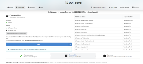 NEXT 를 누른후에 Edition 을 선택 할수가 있는데요.