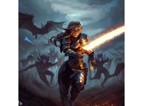[Bing] 멋진 갑옷을 입고 괴물과 싸우는 여자